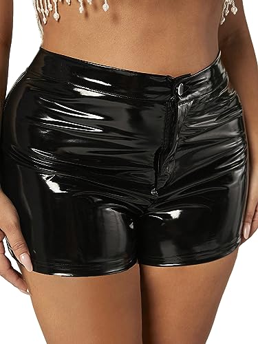 - Feature: PU leather, high waist, zipper up, skinny shorts