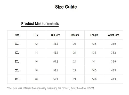 XX-Large Plus: Hip Size: 51.2", Inseam: 2.8", Length: 14.1", Waist Size: 38.6"