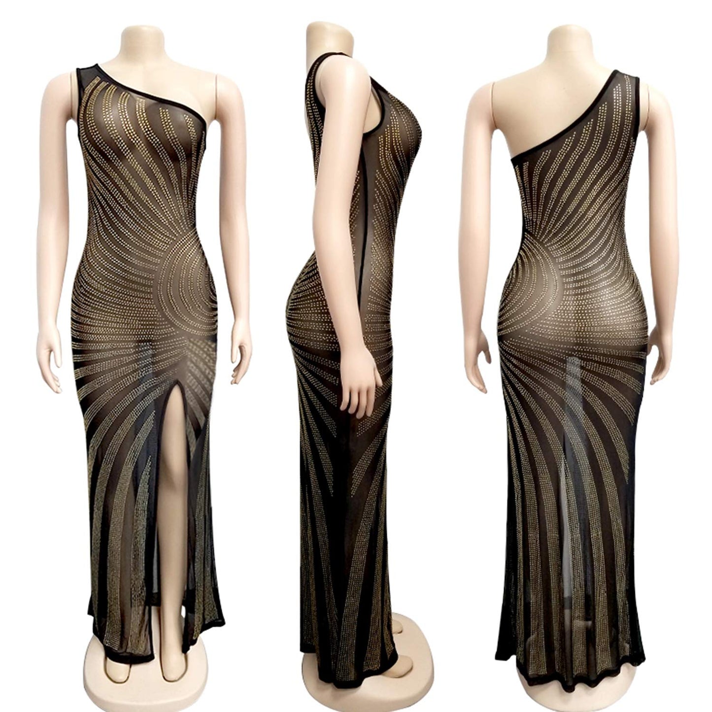 Hot Drilling Sexy Party Dress (Gold)
