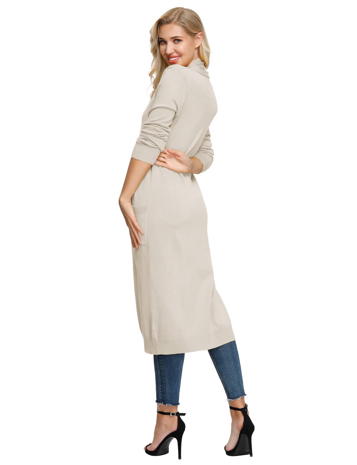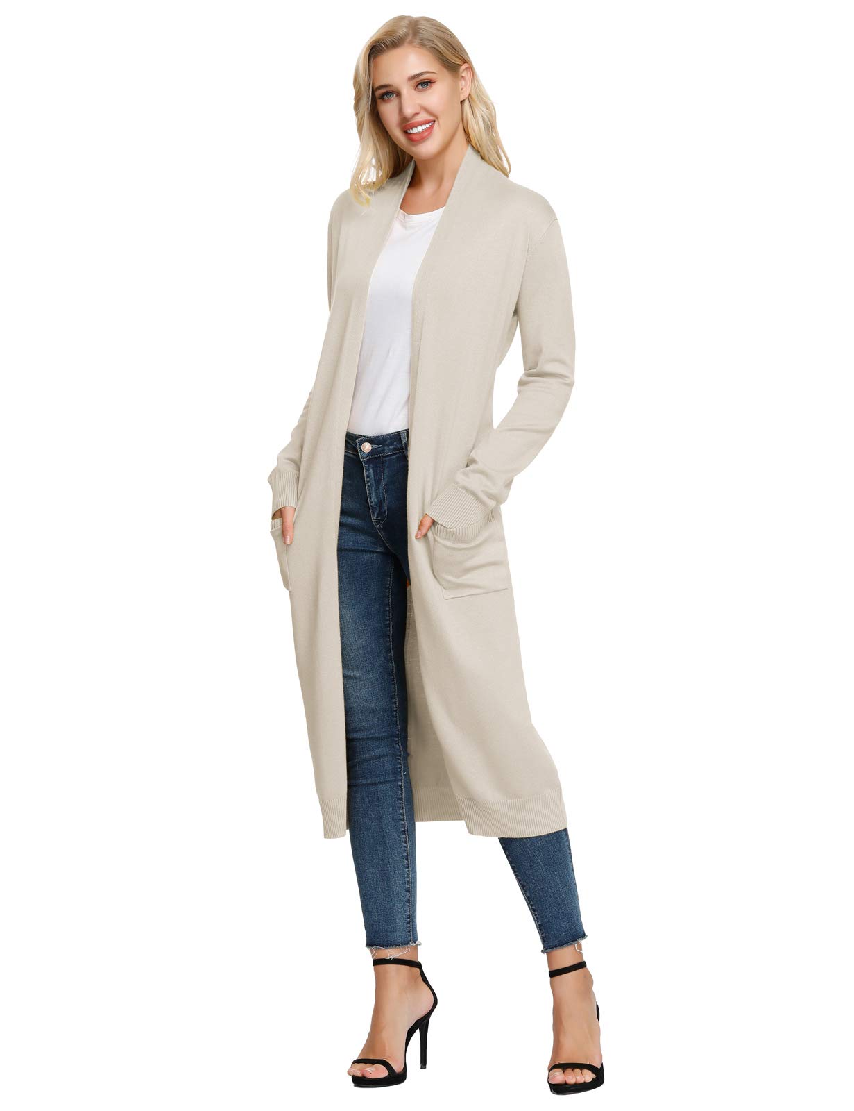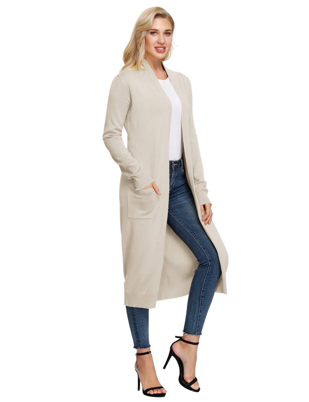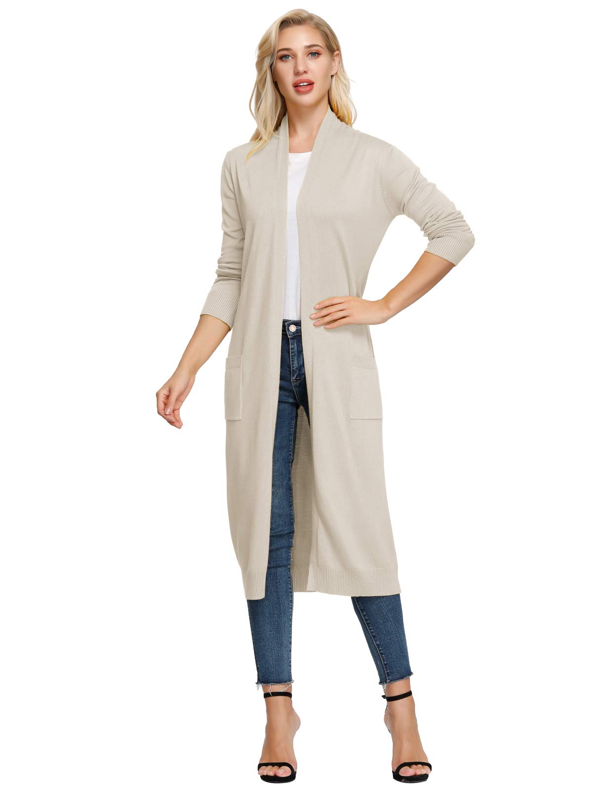 - The open front long duster cardigans gives a non-closure approach with outfits, which gives the possibility to pair with more tops than other sweaters. Rib trim on cuffs, hem with two pocket front.