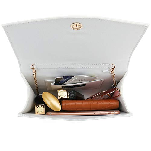 - A detachable 120cm gold-tone O shaped chain strap, offers different carry ways, clutch, shoulder or crossbody purse. O shaped metal chain won’t scratch your cloth or snag / tangle your hair.