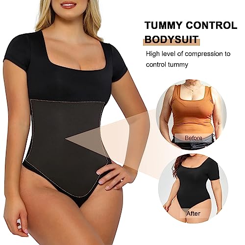 - Square Neck Design: The Square Neck shaper shows off your charming collarbone, make your beauty more natural. This T-Shirts Bodysuit is slimming but not too tight, so comfortable to wear, looks slim, and classy, great for curvy people.
