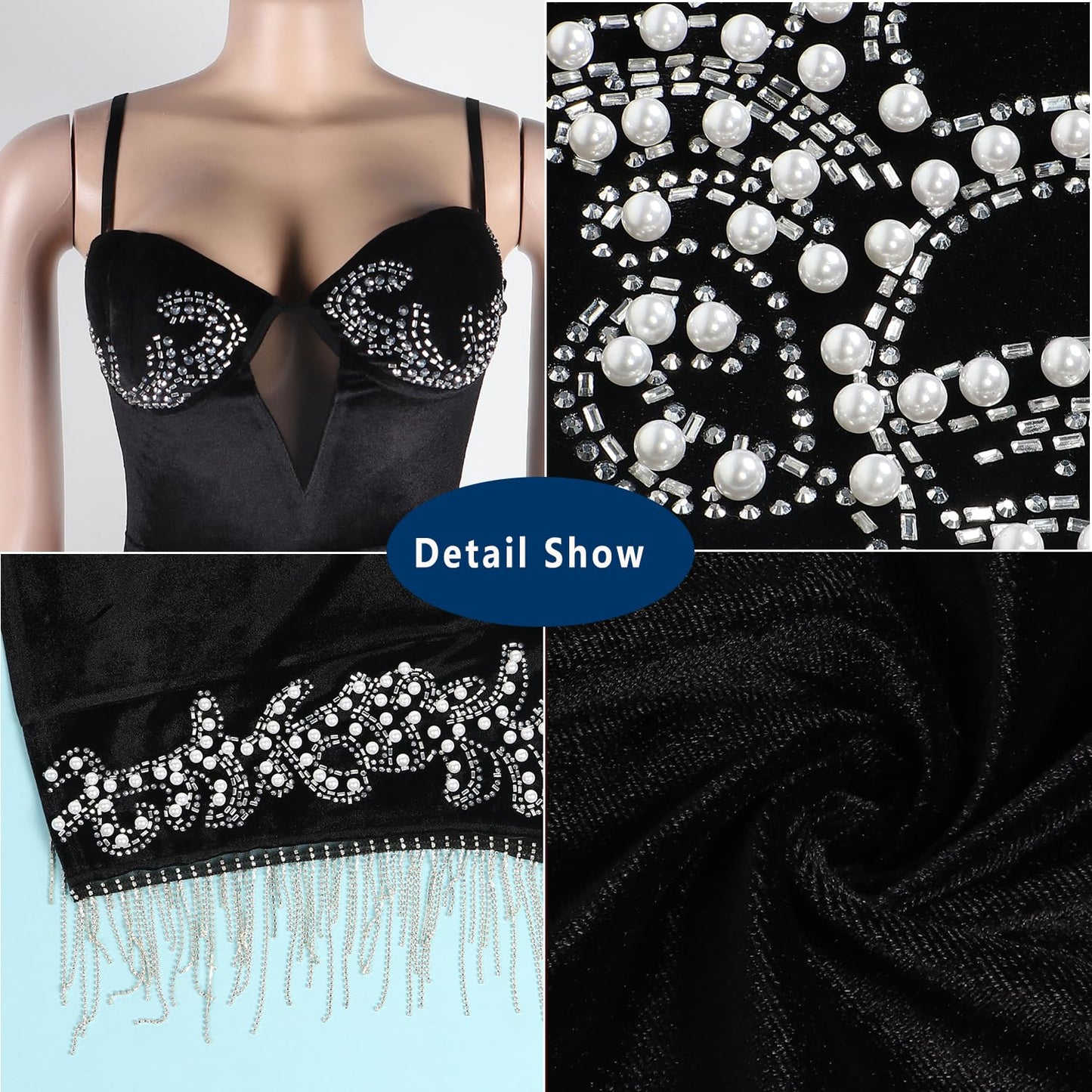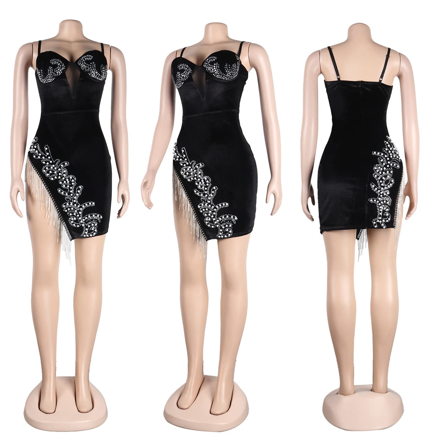 - Slip dress for women, Rhinestone applique dress, mesh see through, bodycon short dresses, going out dresses for women, v neck,zipper closure