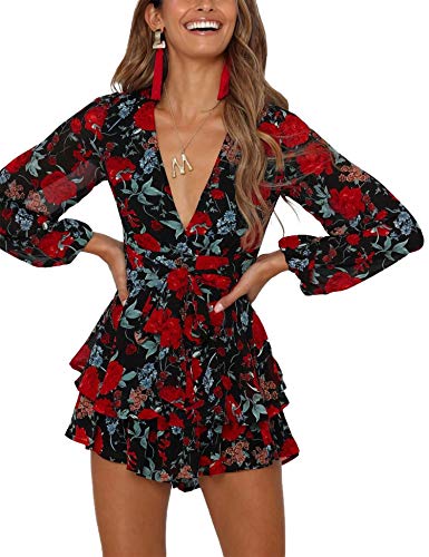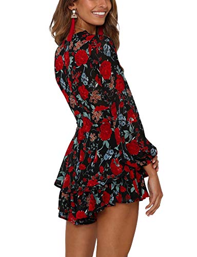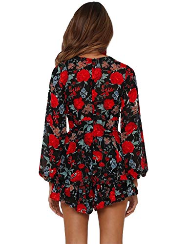 - FEATURES: Long bubble sleeves, deep v-neck, strap around the waist allows for tightness adjustment and bow knot as decoration, double layer ruffle hem, floral print rompers but dress like, which gives a gorgeous and vintage look.